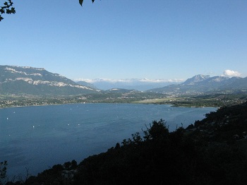 pour déboucher de l'autre coté sur une magnifique vue sur le lac du Bourget avec son bleu turquoise, presque irréel. Une très belle récompense de fin de journée.