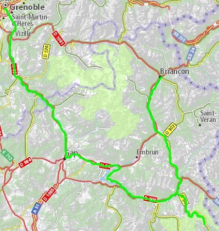 route Napoléon pour rejoindre Grenoble, en passant par le Col Bayard, bien plus modeste, 1248m, mais la route reste tout de même très belle à parcourir, en suivant le Drac,
