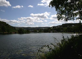 qui forme le frontière entre l'Allemagne et le Luxembourg. Les longs lacets sont bordés d'innombrables vignes,