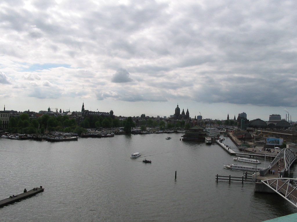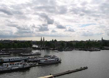 Une vue en hauteur du port d'Amsterdam...