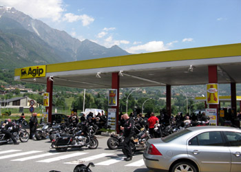 à peine 2 minutes après avoir faire le plein, une nuée de bikers en Harley provenant d'Allemagne, de Suisse et de