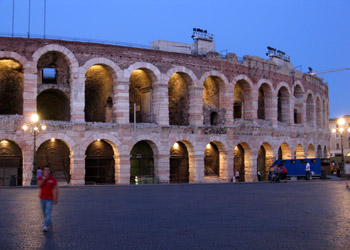 arènes très bien conservées et très célèbres lieu pour les amateurs d'opéra. Sur la place Bra, les