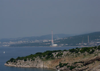 Toujours depuis le pont, mais la partie industrie lourde vers Rijeka, beaucoup moins idyllique