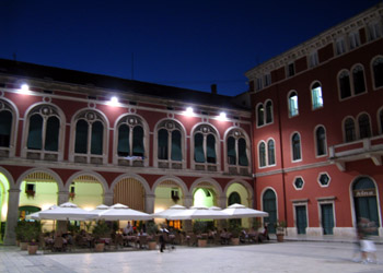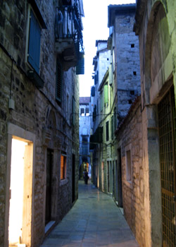 la vieille ville (Palais dioclétien, classé patrimoine mondial par l'Unesco), nous aterrisons au port. Là une vieille femme nous propose de louer un chambre chez elle,