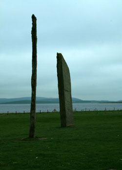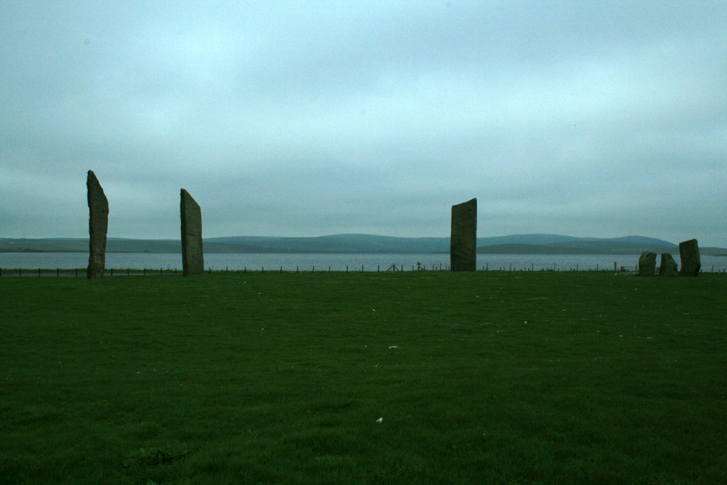 de granit sous un ciel plombé. Je me dirige directement vers les premiers sites préhistoriques de Stenness et de Brodgar.