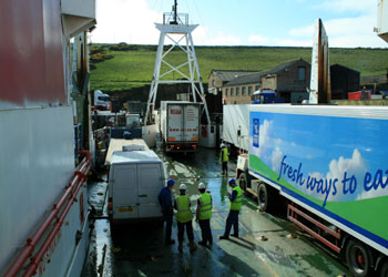poids lourds. La traversé est plus courte, environ une heure mais le bateau passe à coté des côtes rocheuses Sud de l'archipel