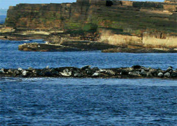 La pointe Sud de South Ronaldsay, avec des phoques gris qui se prélassent au soleil