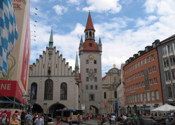 La Marienplatz avec le Rathaus (Mairie)
