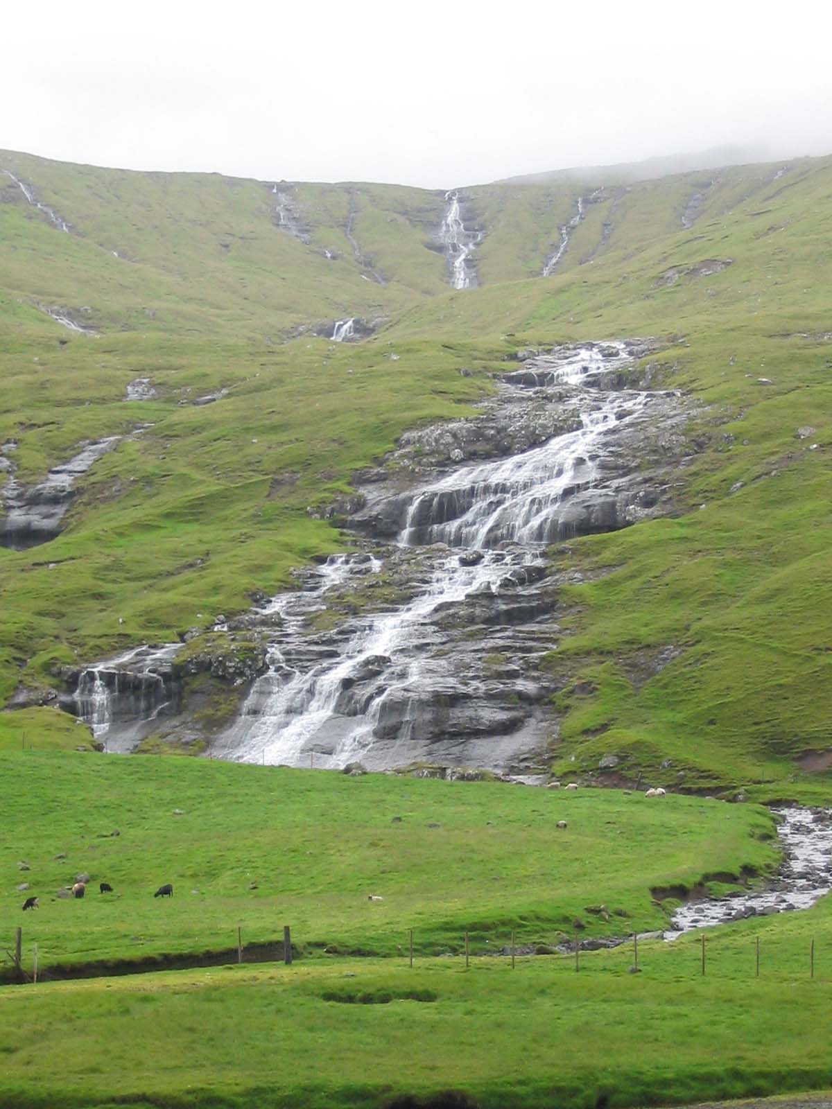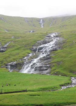 Une très belle chute d'eau sur l'île de Streymoy, après la traversée du tunnel qui relie Vagar et Streymoy.