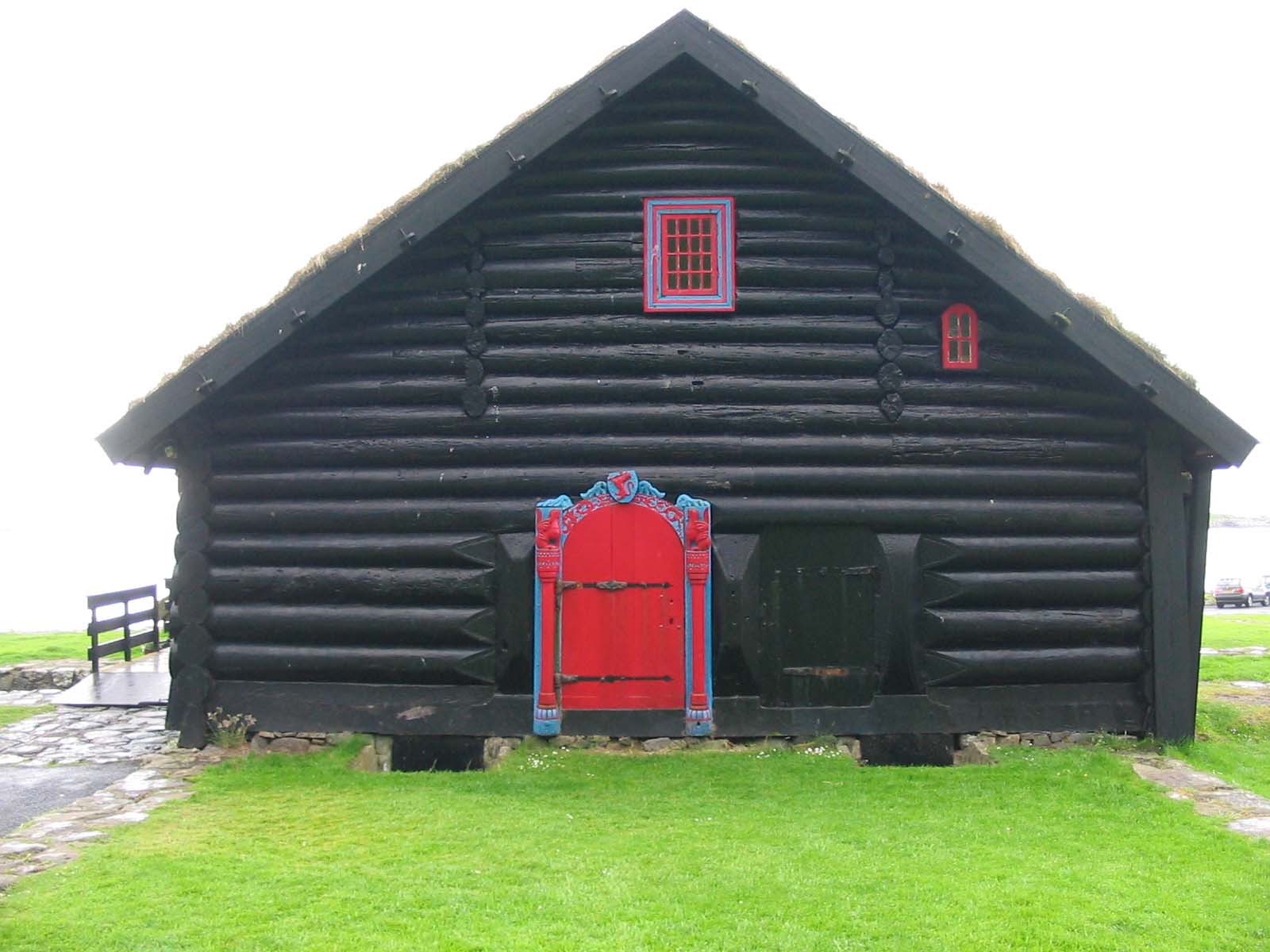 Une maison en bois peint dans Kirkjubour.
