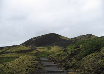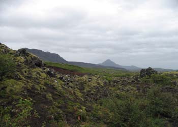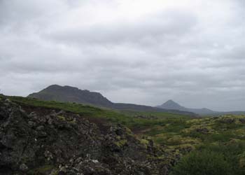 instants, entre 2 averses pour prendre un vieux volcan en photo. Je repars et arrive à Borganes. En ce