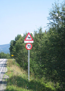 Les panneaux les plus typiques : Attention aux élans ! et Limitation à 70km/h !