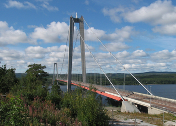 Un pont les enjambant, en direction d'Uppsala