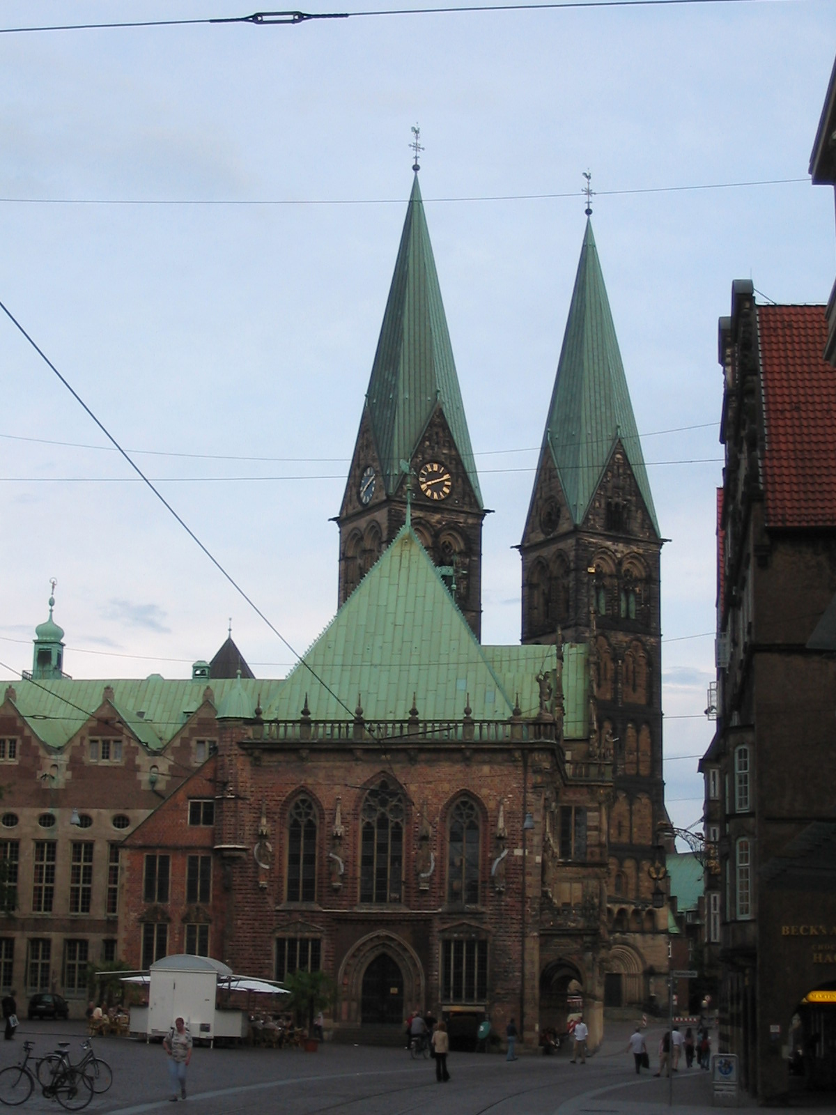 Etape le soir à Bremen. La cathédrale et ses toits vert de gris