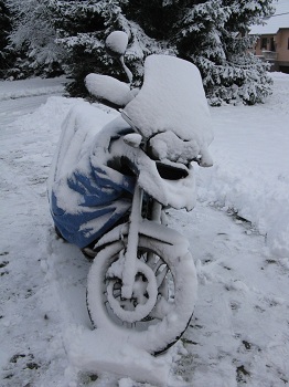 Je remonte la batterie, dégivre et dégage la moto de la neige et tout redémarre au quart de tour (BMW, unstoppable !).