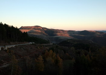 Soleil couchant dans les Cevennes, au col de Montmirat