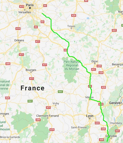 route le long de l'Yonne, plutot agréable. Puis ensuite un ruban d'autoroute, jusqu'à Bourg en Bresse. La dernière partie jusqu'à la